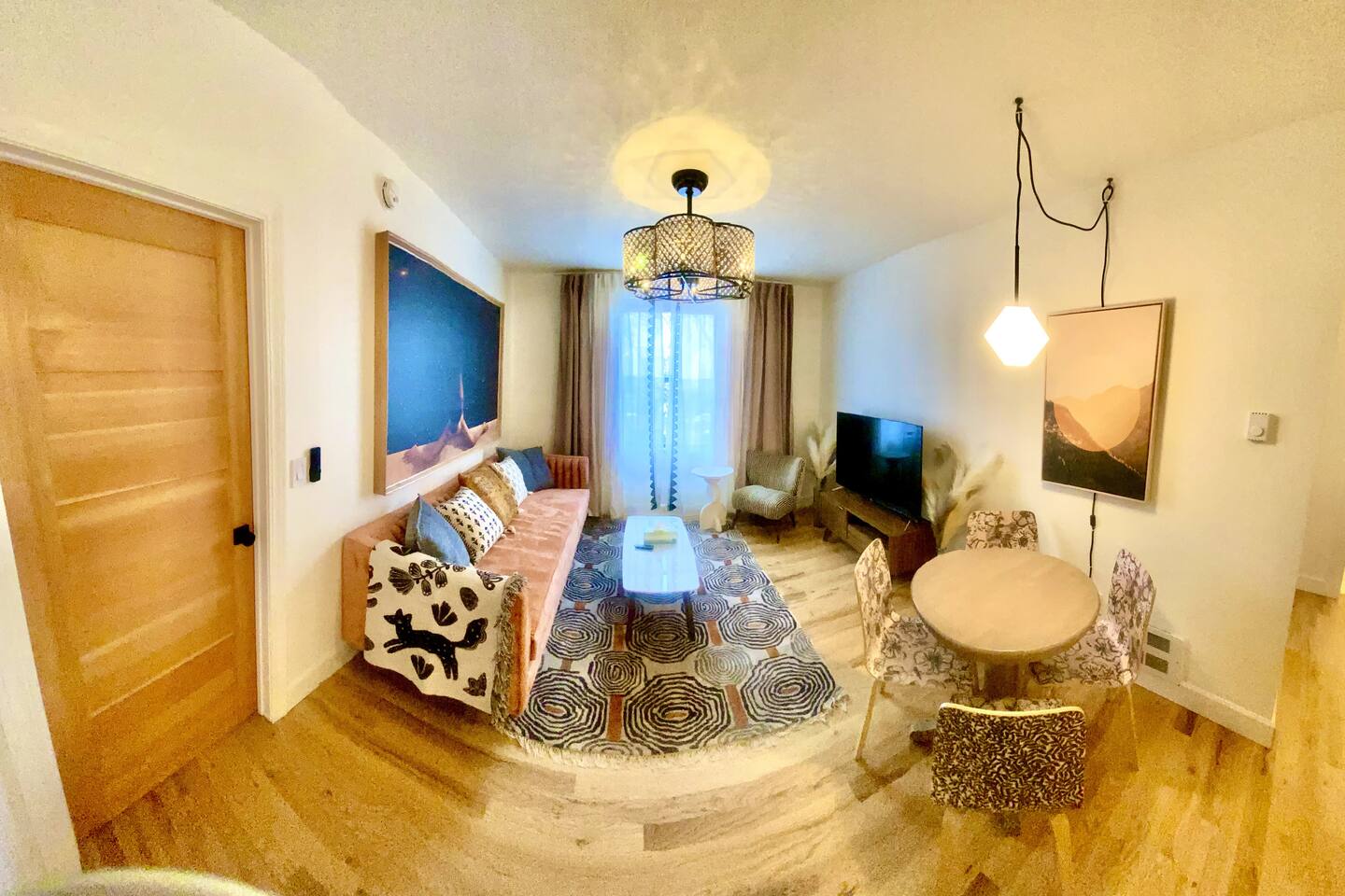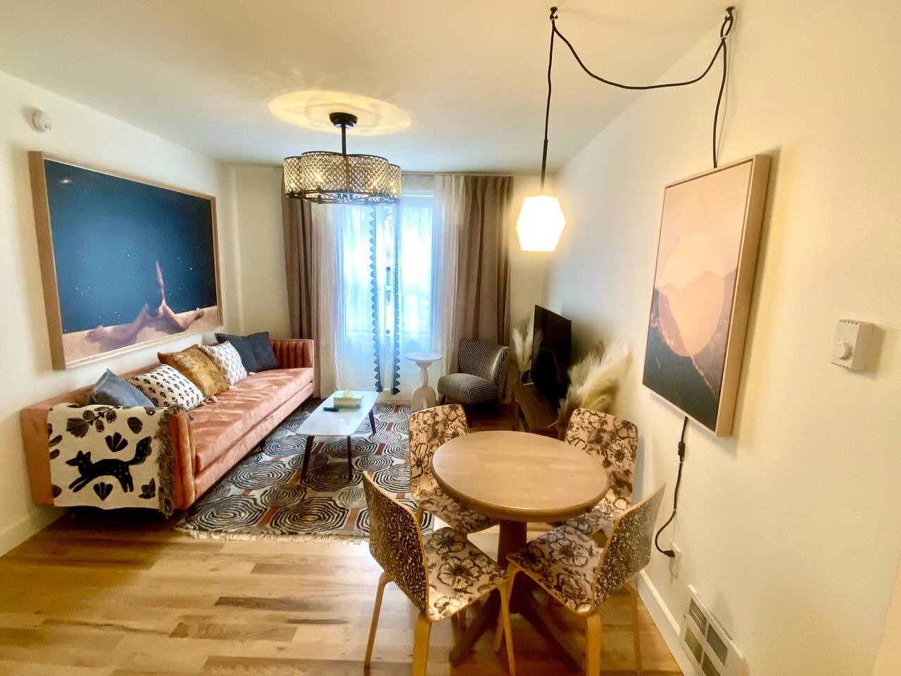 Enjoy a stylish experience at this fully renovated centrally-located apartment in the Moscow Hotel. You will be staying in the heart of downtown Moscow! •Lots of natural light, wood floors and high end finishes. •Steps from the best restaurants, wine bars, coffee shops, and events. •Full kitchen, stocked with Organic coffee and teas. •Equipped with a Smart TV and stylish furnishings. •Bathroom stocked with Organic shampoo, conditioner and body wash. •Secure self check-in/ out